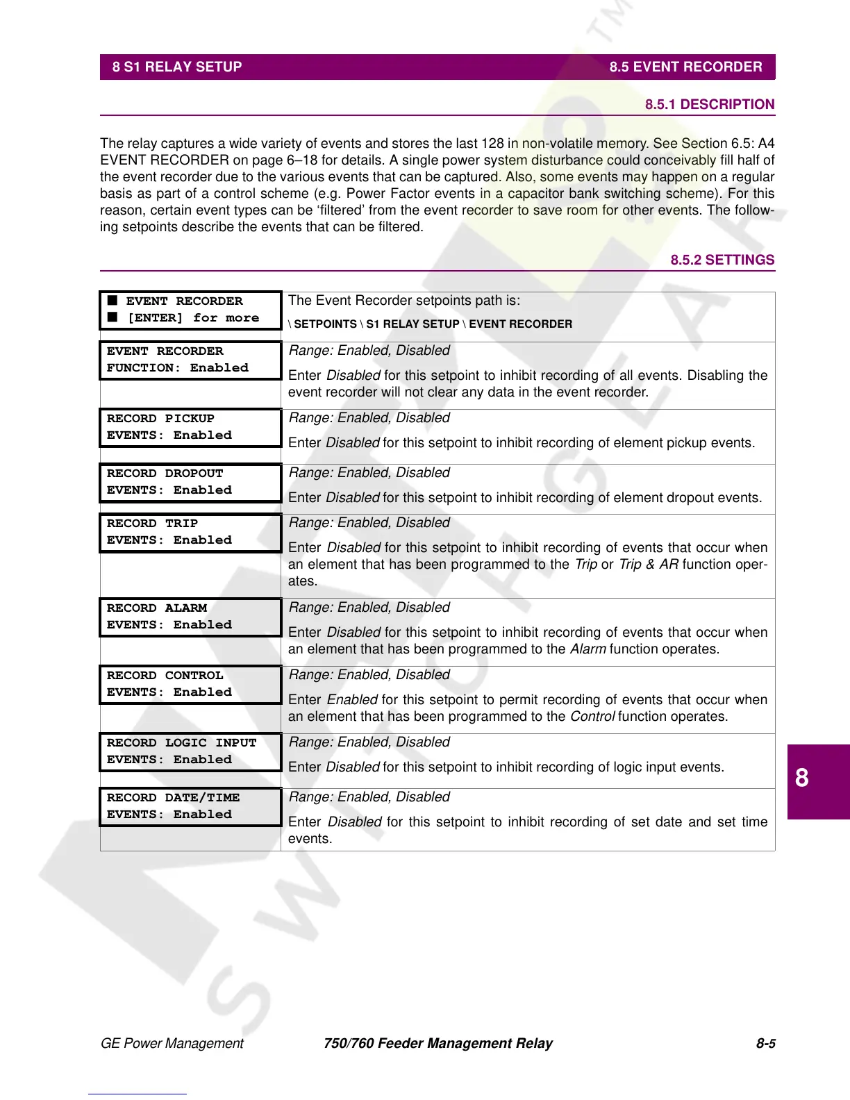 8.5 EVENT RECORDER 8.5.1 DESCRIPTION