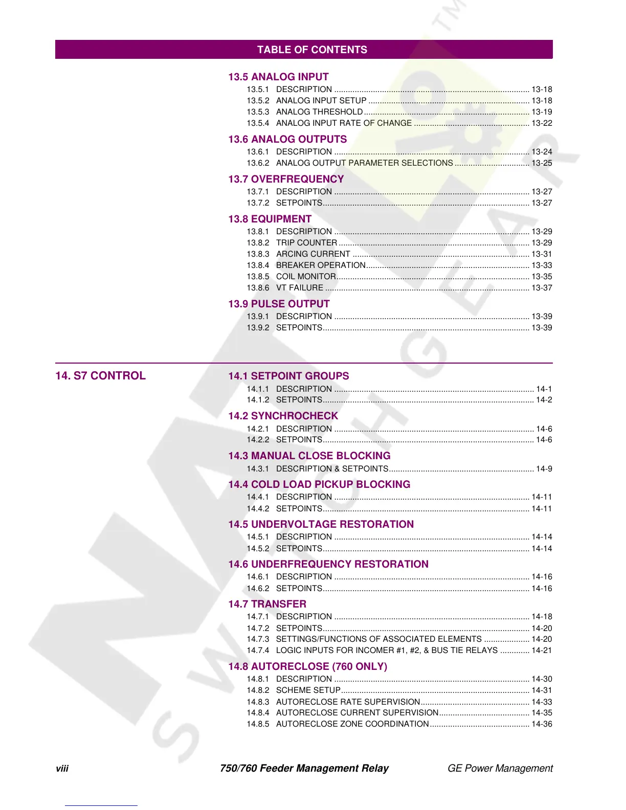 13.8.6 VT FAILURE .......................................................................................... 13-37
