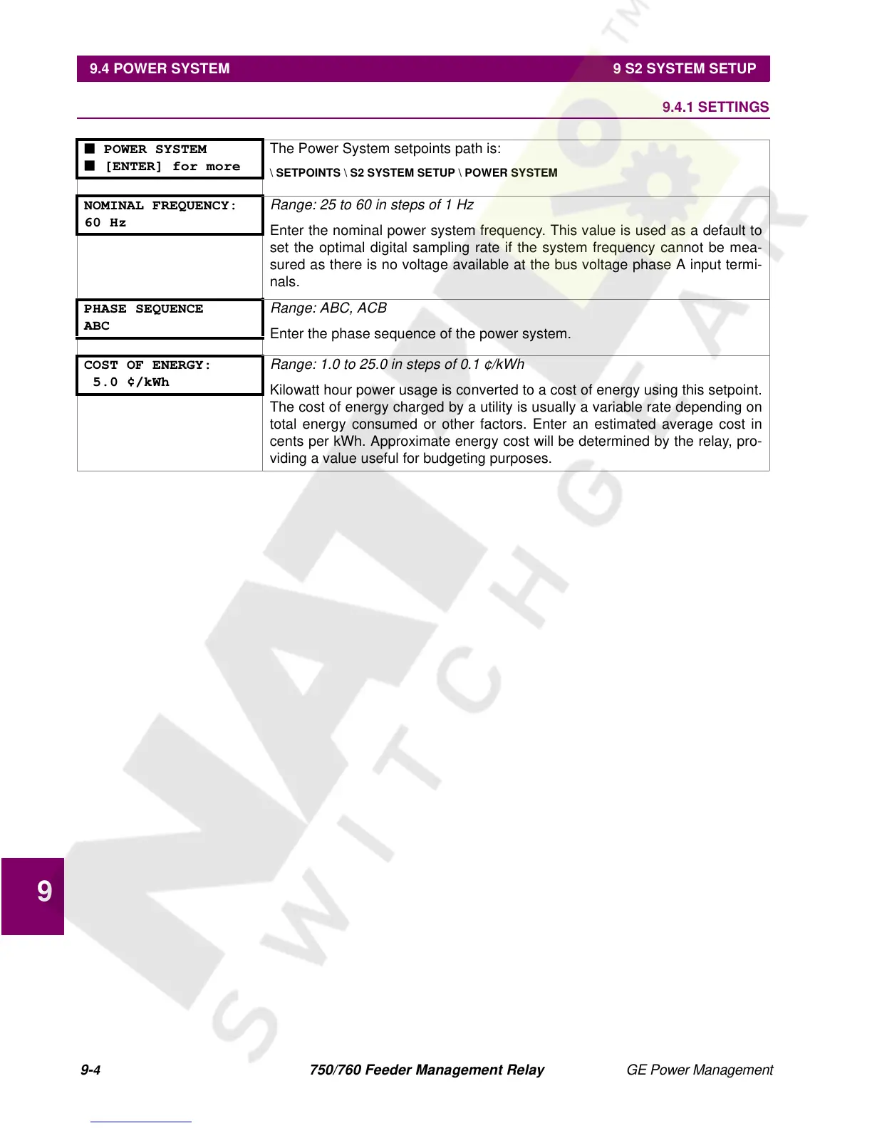 9.4 POWER SYSTEM 9.4.1 SETTINGS