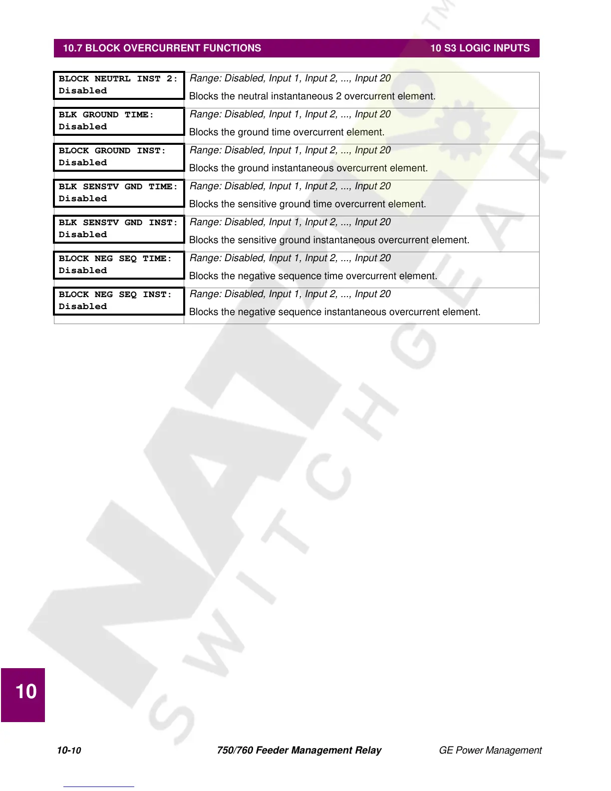 10.7 BLOCK OVERCURRENT FUNCTIONS 10 S3 LOGIC INPUTS