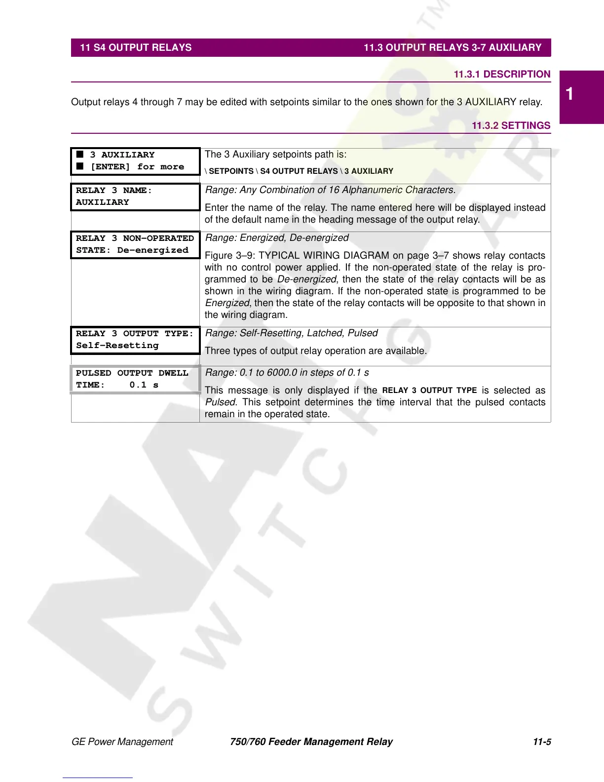 11.3 OUTPUT RELAYS 3-7 AUXILIARY 11.3.1 DESCRIPTION