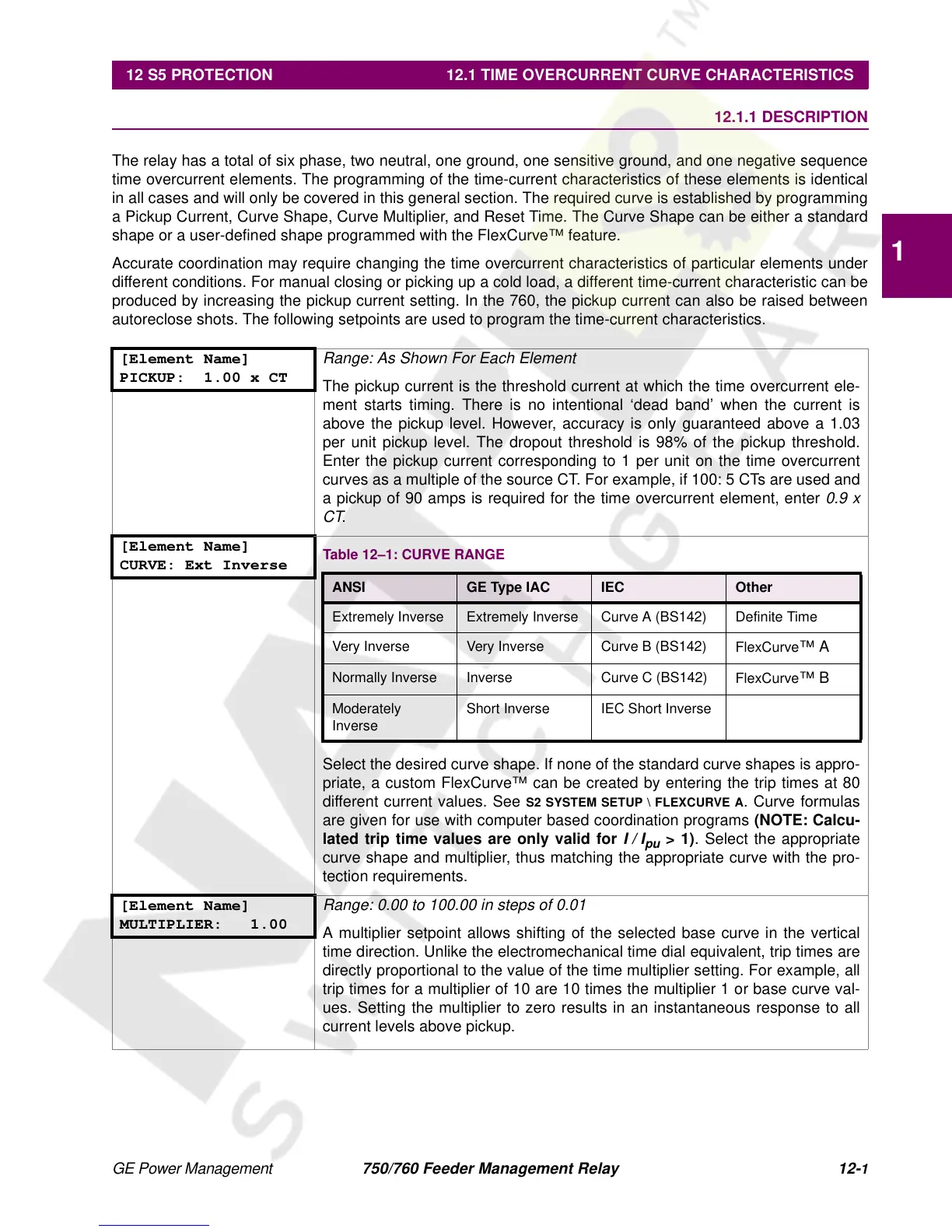 12 S5 PROTECTION 12.1 TIME OVERCURRENT CURVE CHARACTERISTICS 12.1.1 DESCRIPTION