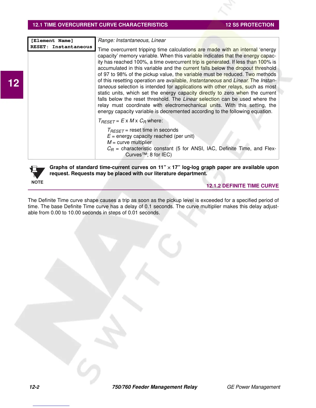 12.1 TIME OVERCURRENT CURVE CHARACTERISTICS 12 S5 PROTECTION