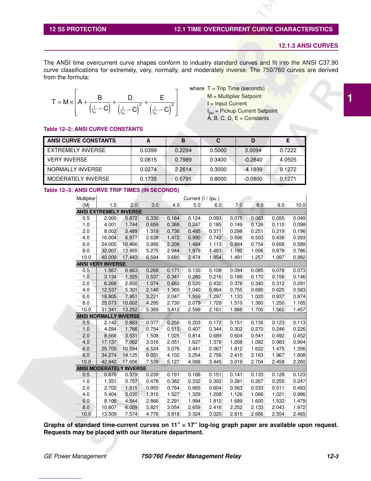 Table 12–3: ANSI CURVE TRIP TIMES (IN SECONDS)