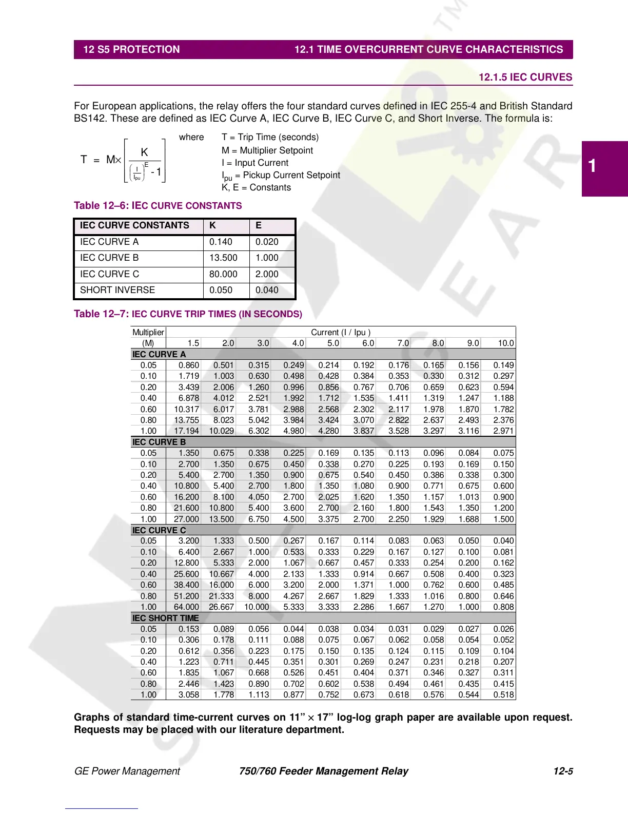 12 S5 PROTECTION 12.1 TIME OVERCURRENT CURVE CHARACTERISTICS