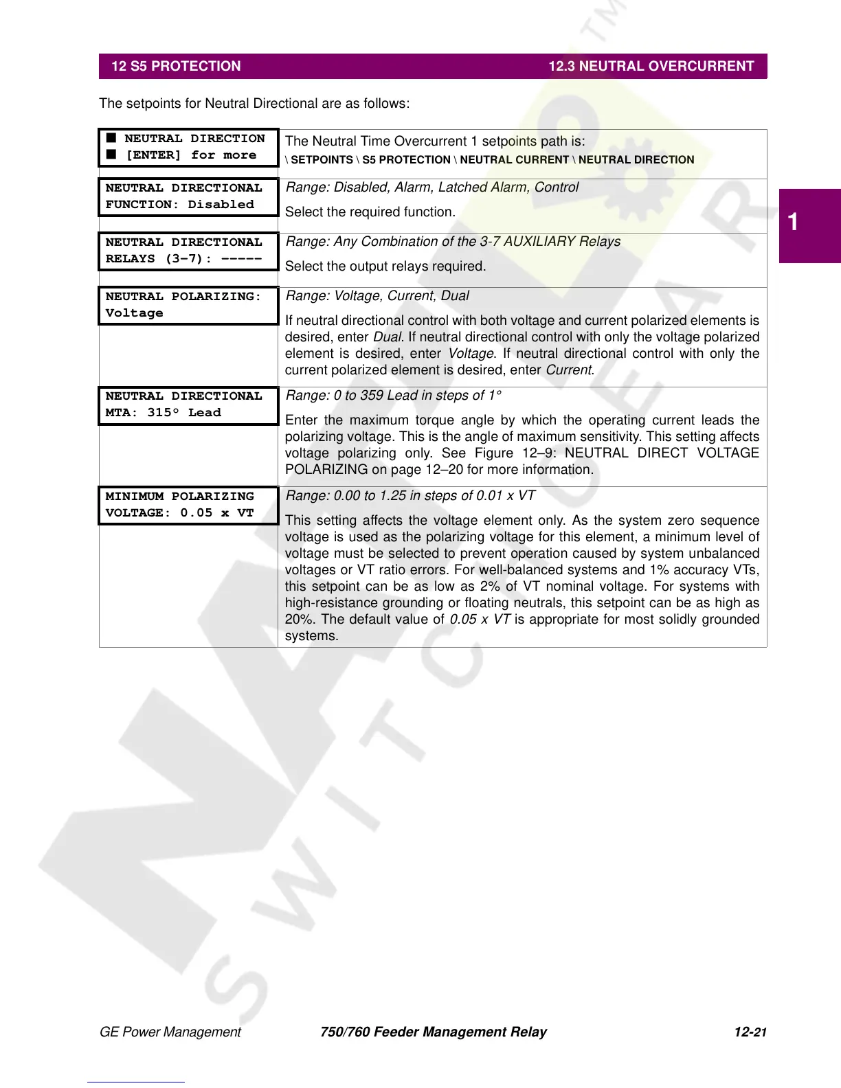 12 S5 PROTECTION 12.3 NEUTRAL OVERCURRENT