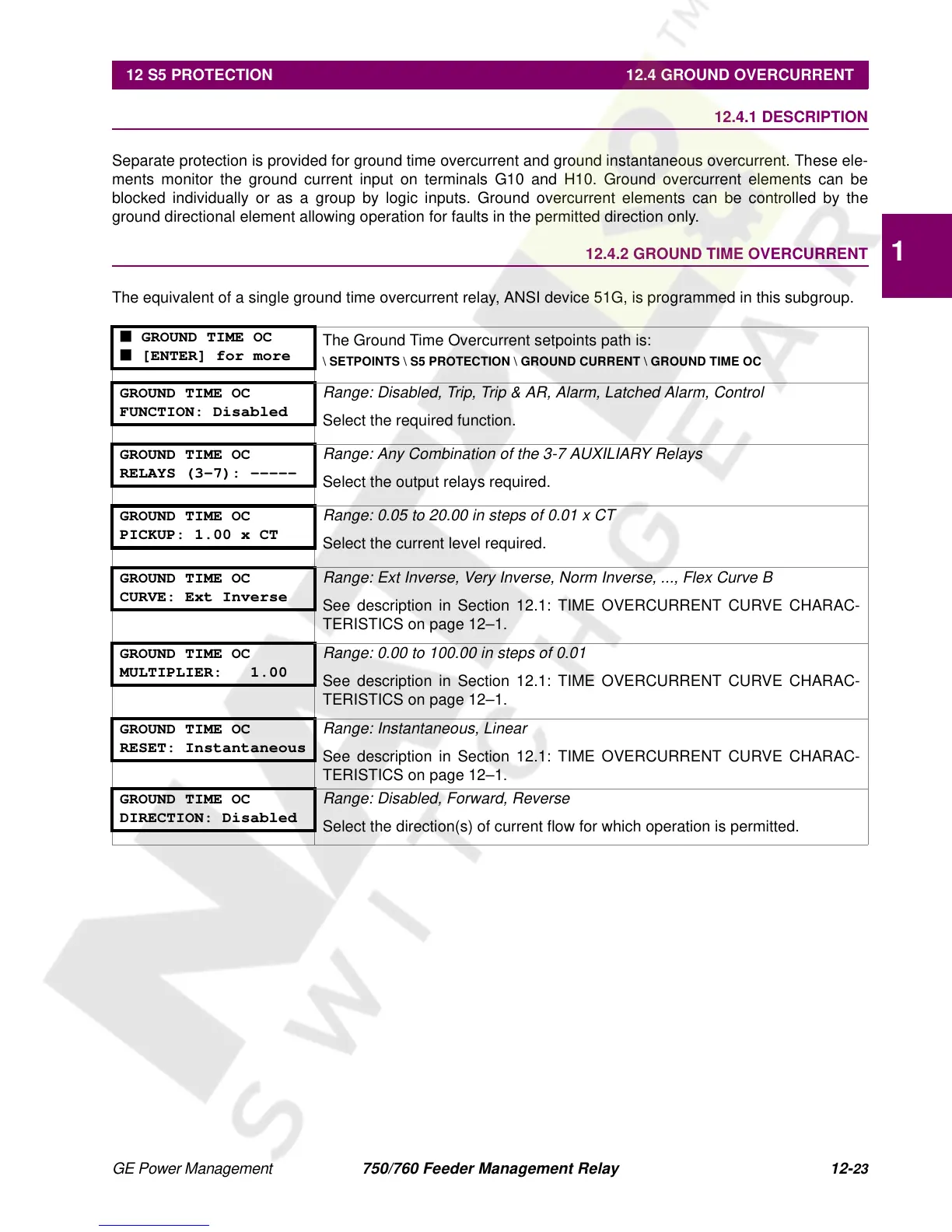 12 S5 PROTECTION 12.4 GROUND OVERCURRENT