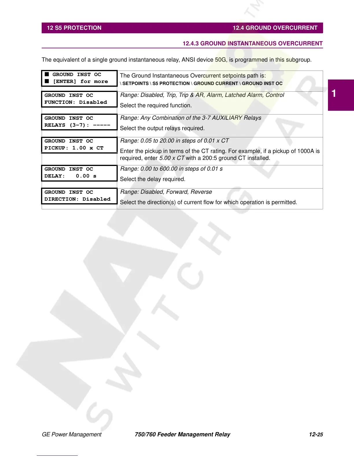 12.4.3 GROUND INSTANTANEOUS OVERCURRENT