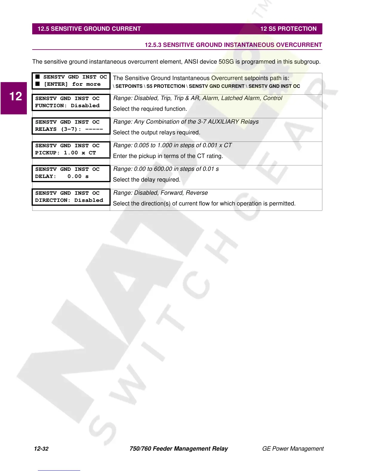 12.5.3 SENSITIVE GROUND INSTANTANEOUS OVERCURRENT
