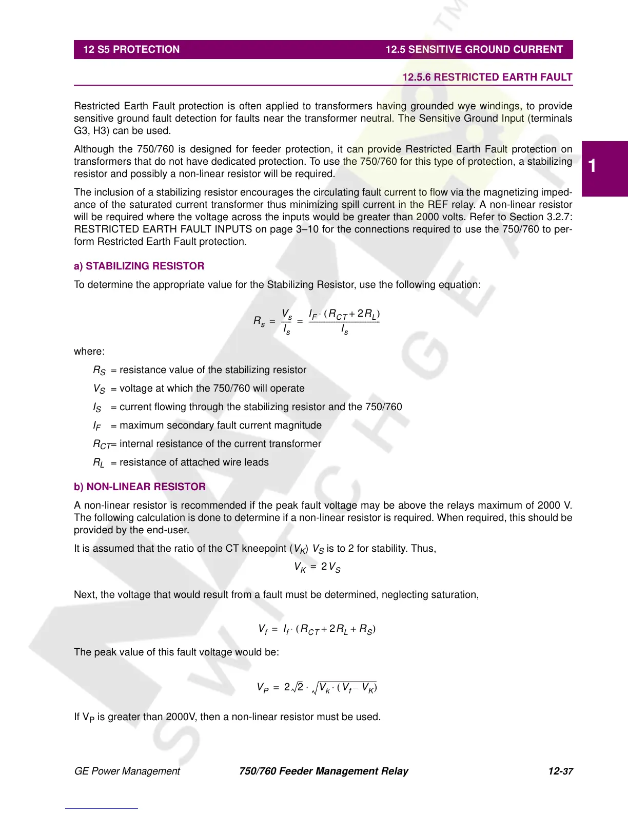 12 S5 PROTECTION 12.5 SENSITIVE GROUND CURRENT