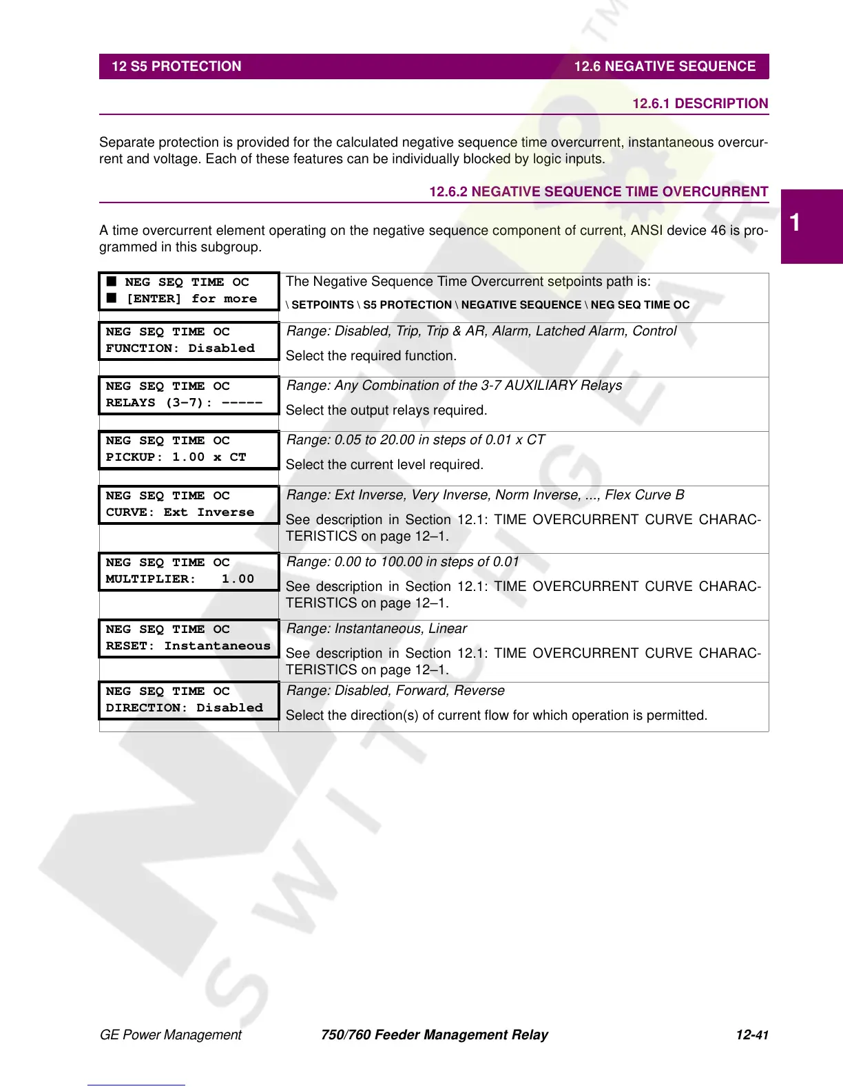 12 S5 PROTECTION 12.6 NEGATIVE SEQUENCE