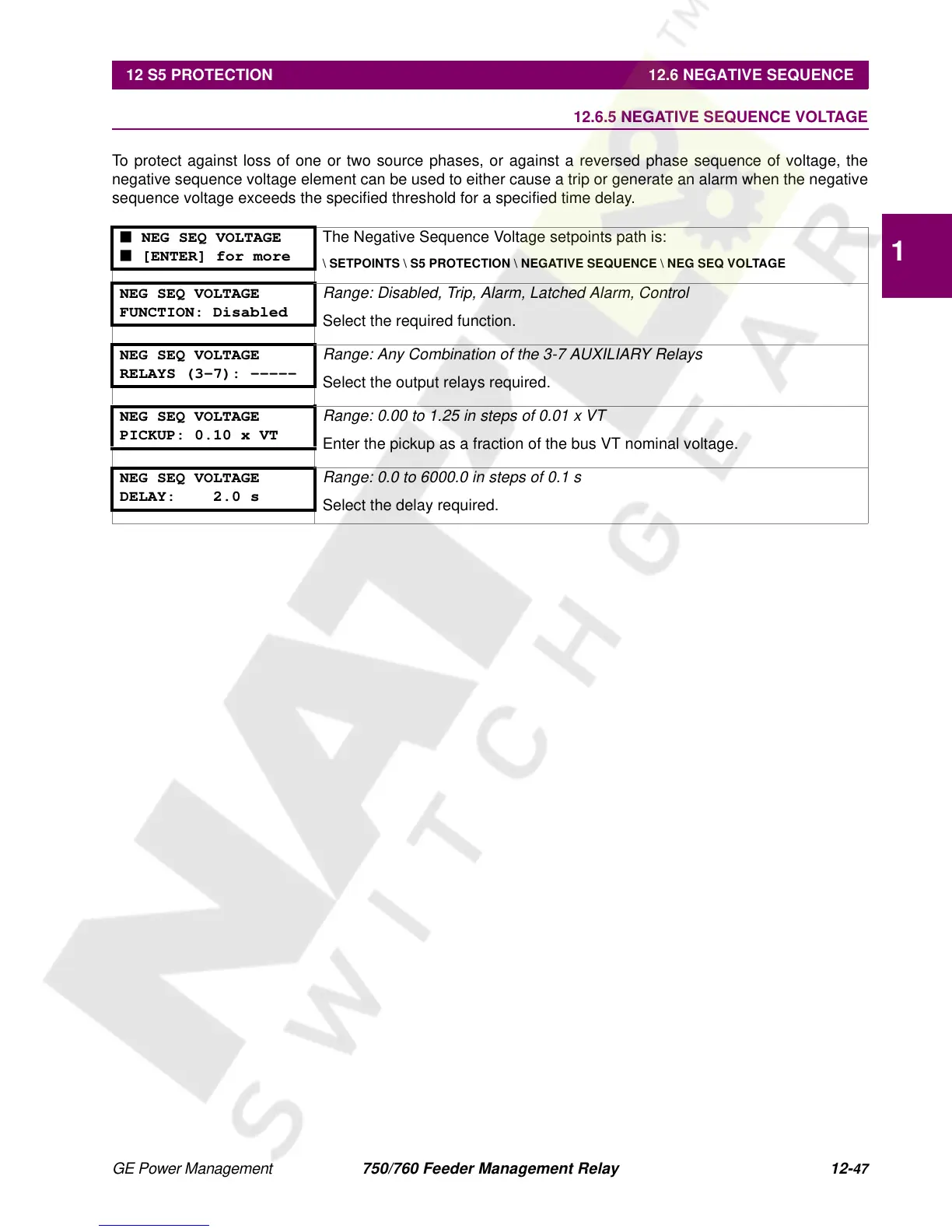 12.6.5 NEGATIVE SEQUENCE VOLTAGE