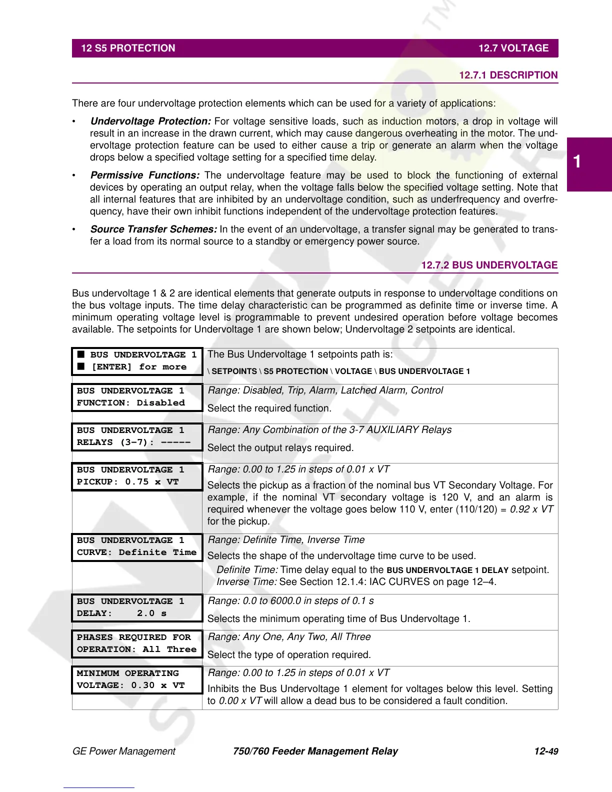 \ SETPOINTS \ S5 PROTECTION \ VOLTAGE \ BUS UNDERVOLTAGE 1