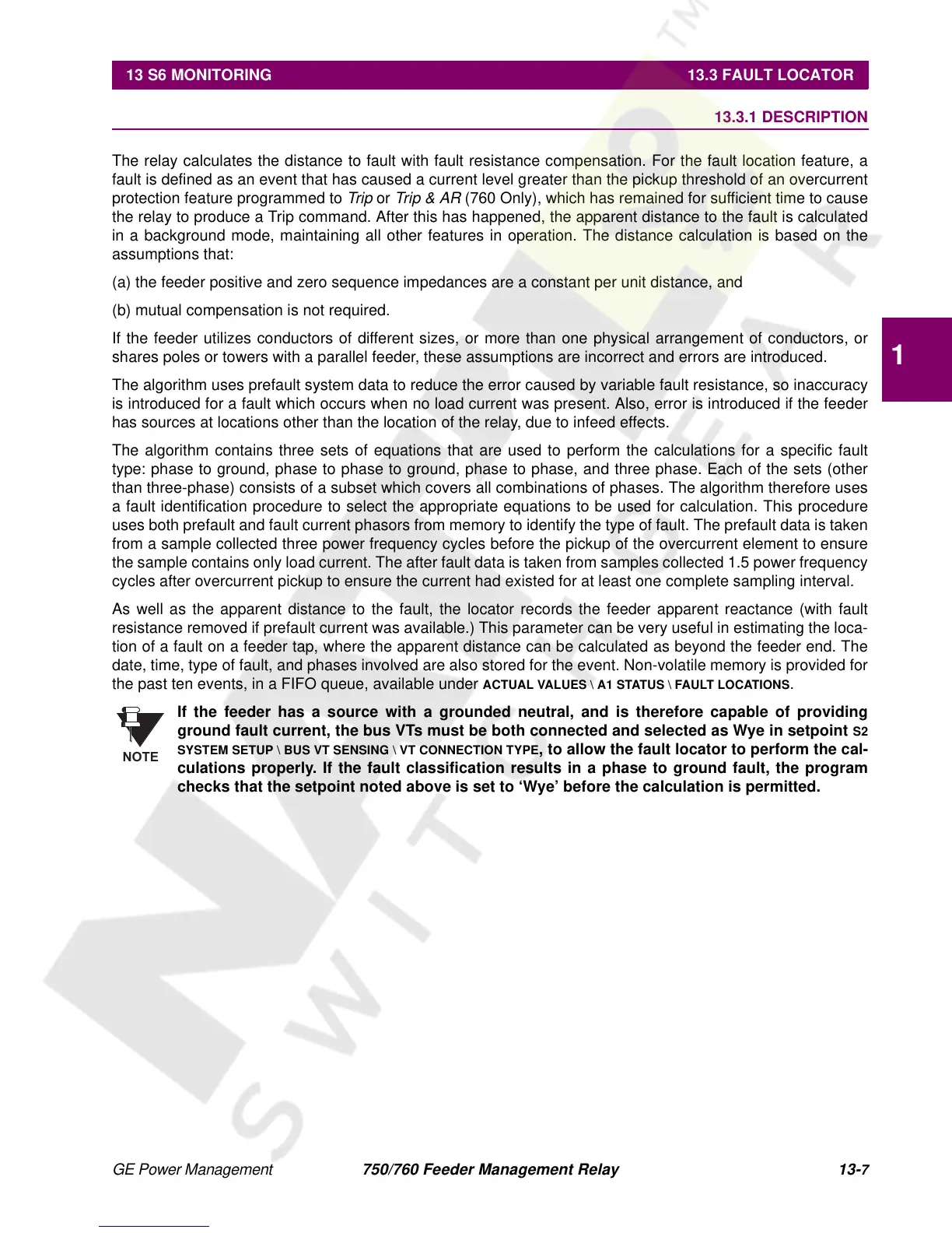 13.3 FAULT LOCATOR 13.3.1 DESCRIPTION