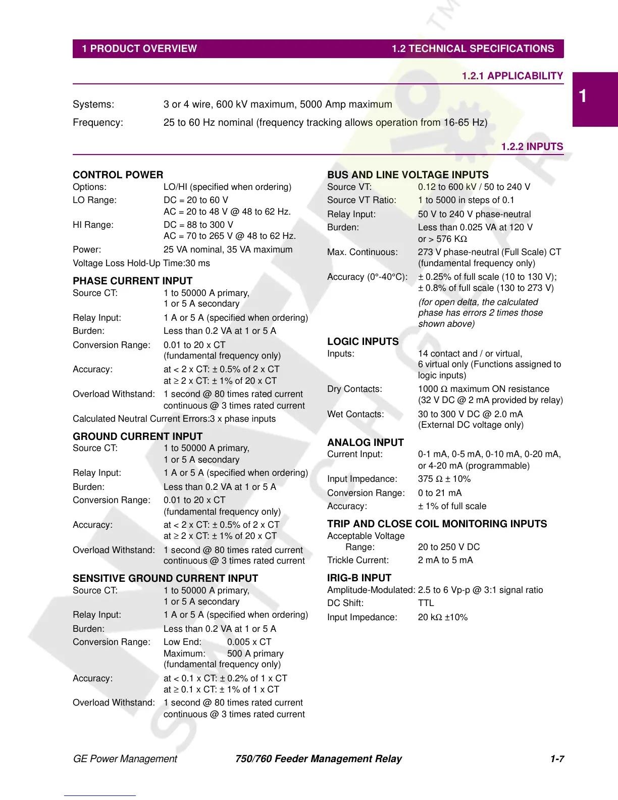 1.2 TECHNICAL SPECIFICATIONS 1.2.1 APPLICABILITY