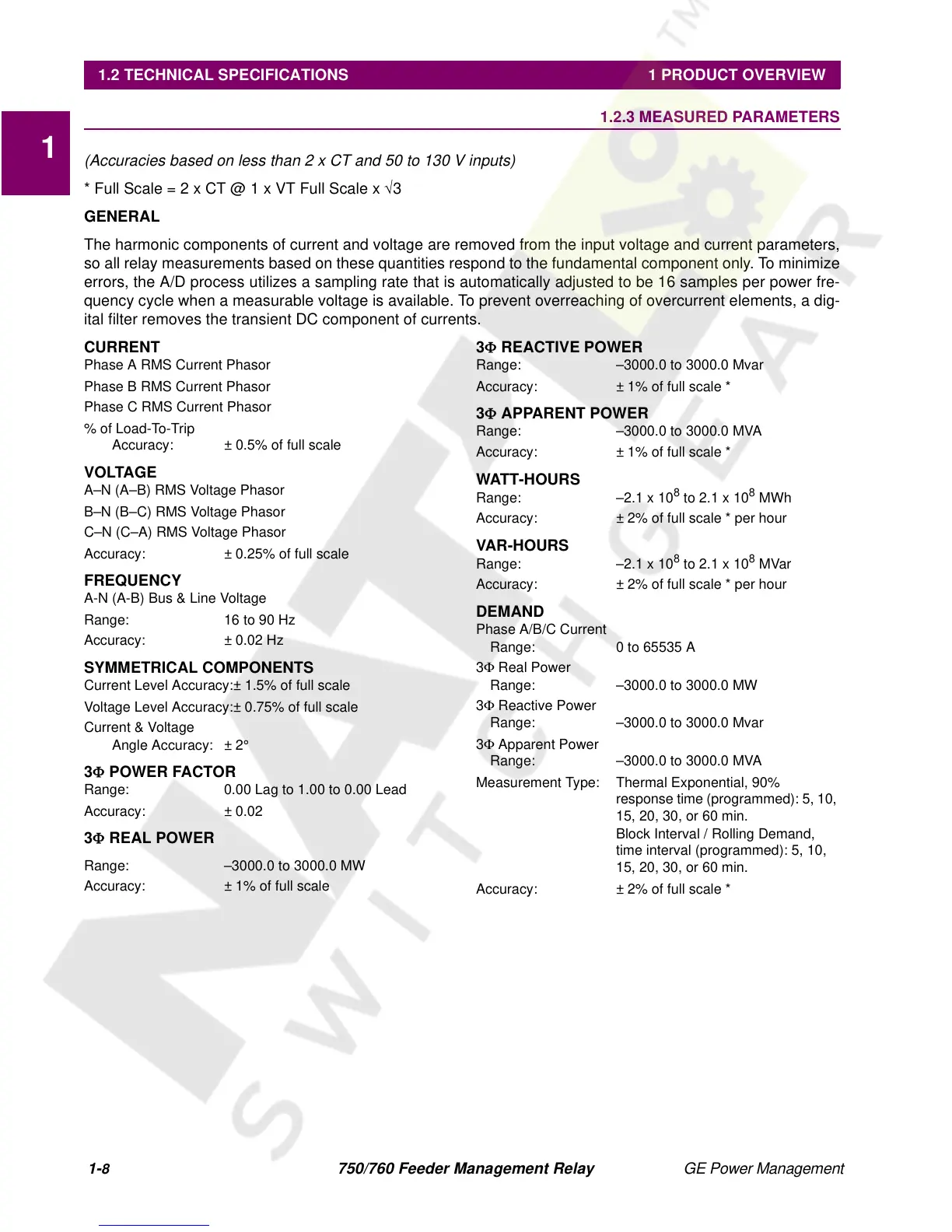 1.2 TECHNICAL SPECIFICATIONS 1 PRODUCT OVERVIEW