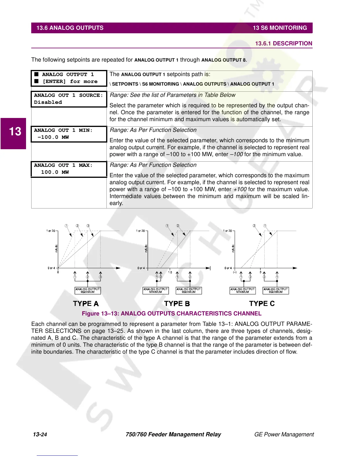 Each channel can be programmed to represent a parameter from Table 13–1: ANALOG OUTPUT PARAME-