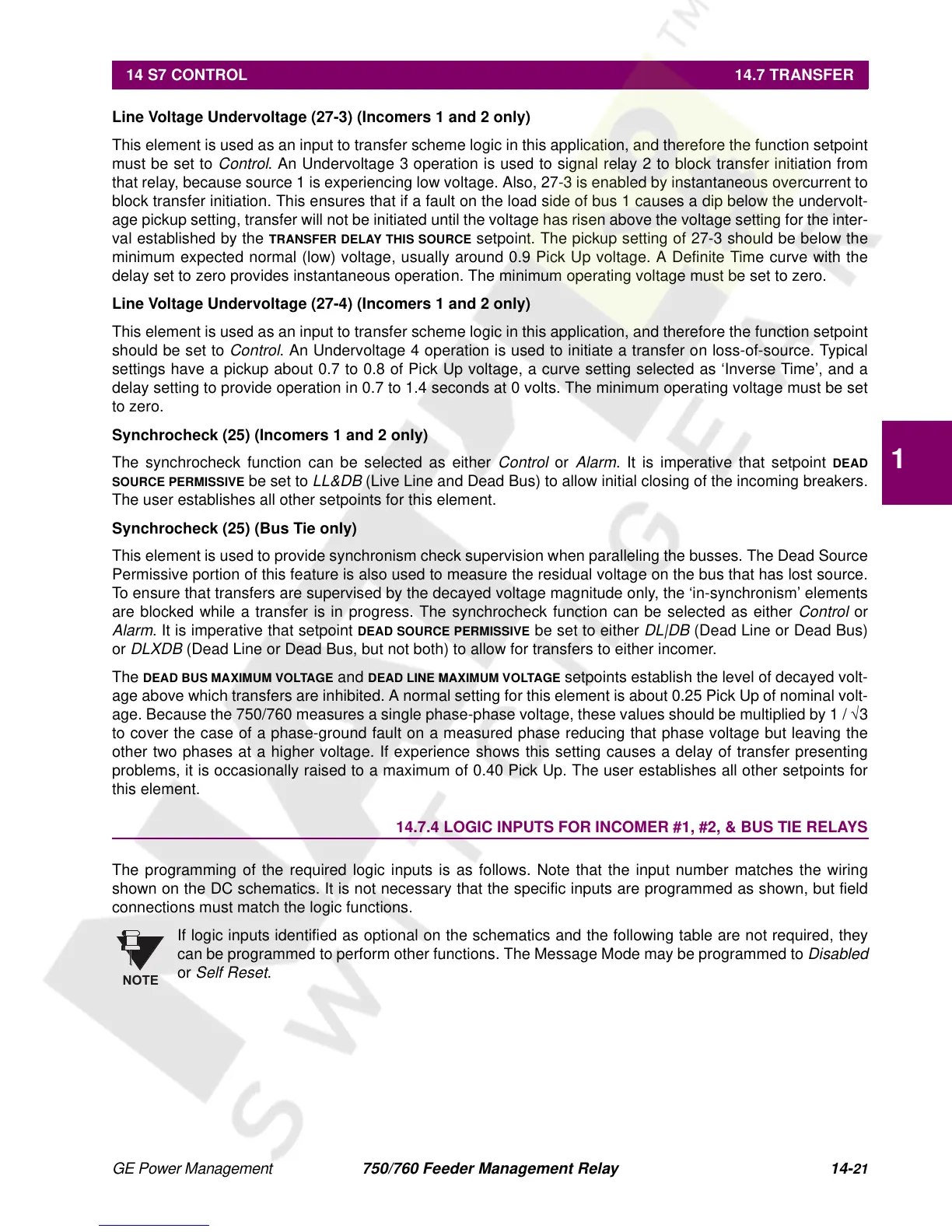 14.7.4 LOGIC INPUTS FOR INCOMER #1, #2, & BUS TIE RELAYS