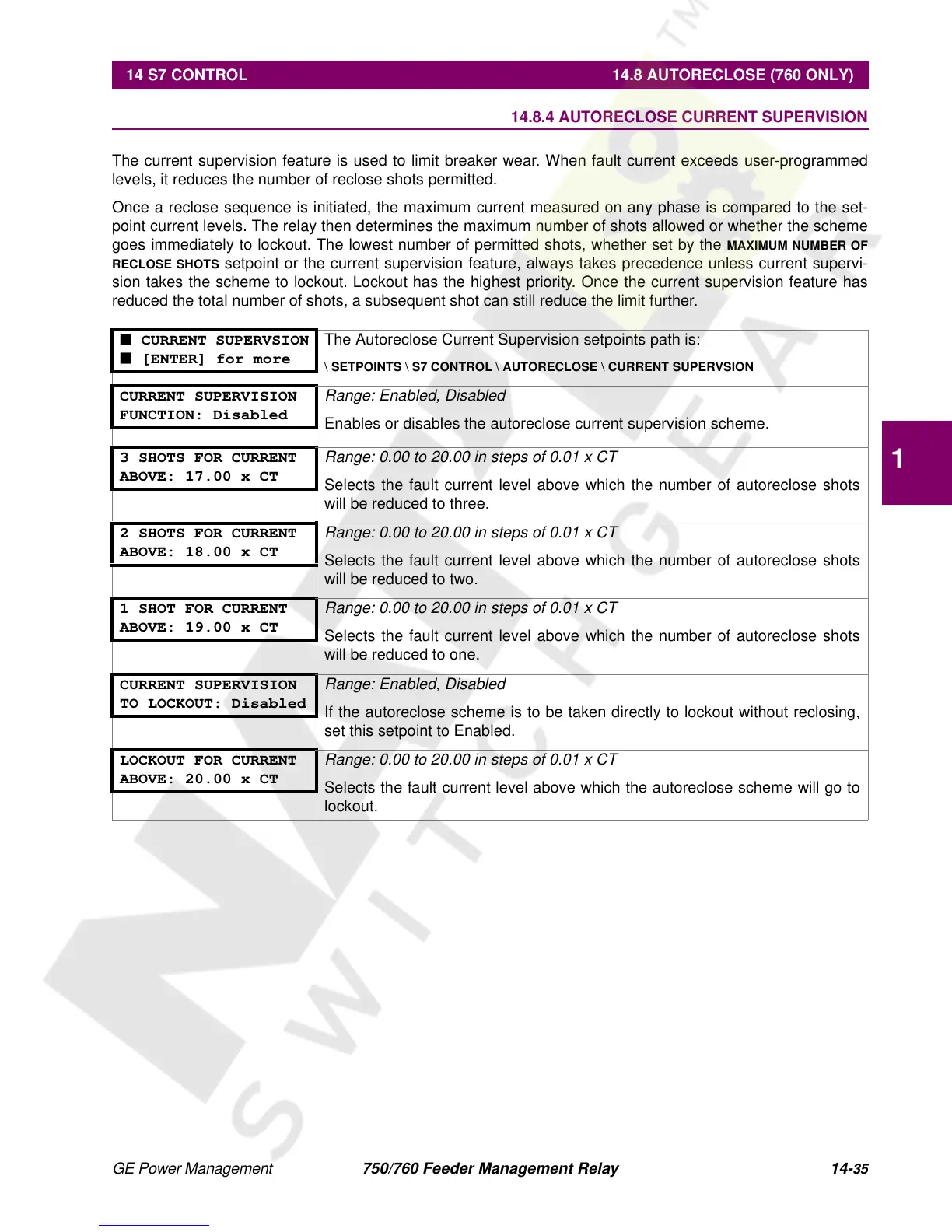 14.8.4 AUTORECLOSE CURRENT SUPERVISION