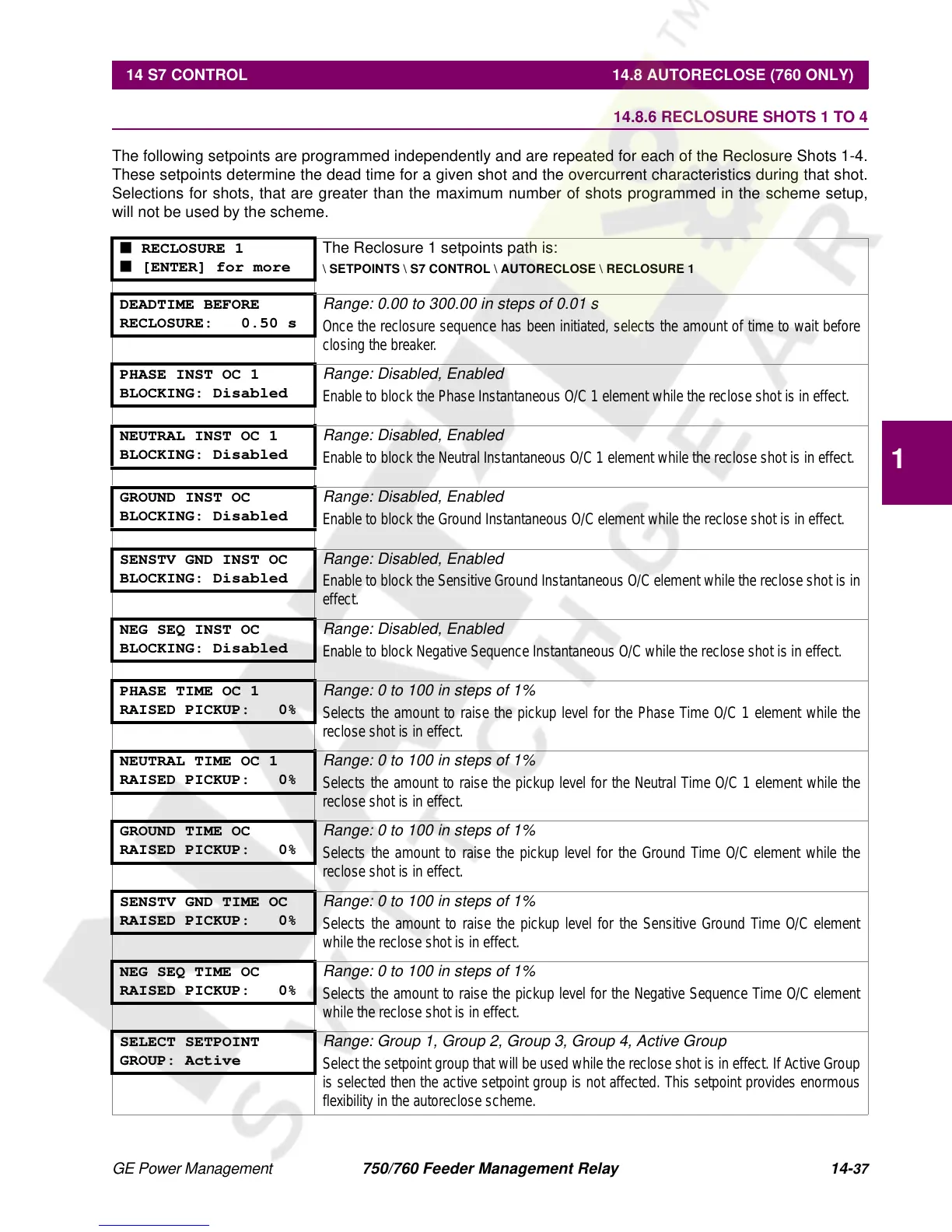 14.8.6 RECLOSURE SHOTS 1 TO 4