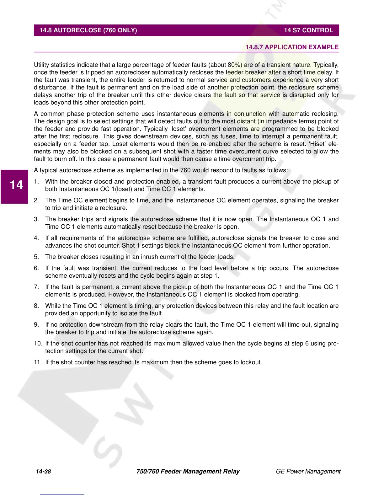 14.8 AUTORECLOSE (760 ONLY) 14 S7 CONTROL