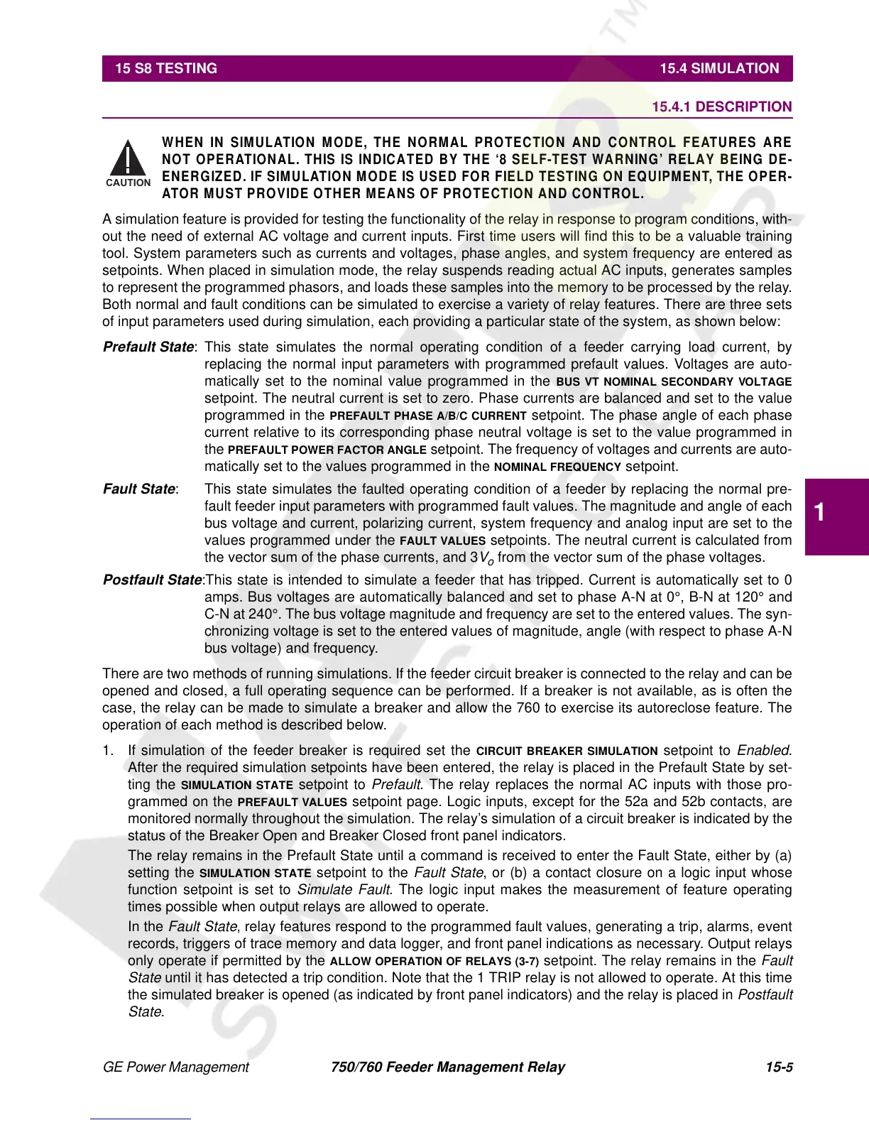 WHEN IN SIMULATION MODE, THE NORMAL PROTECTION AND CONTROL FEATURES ARE