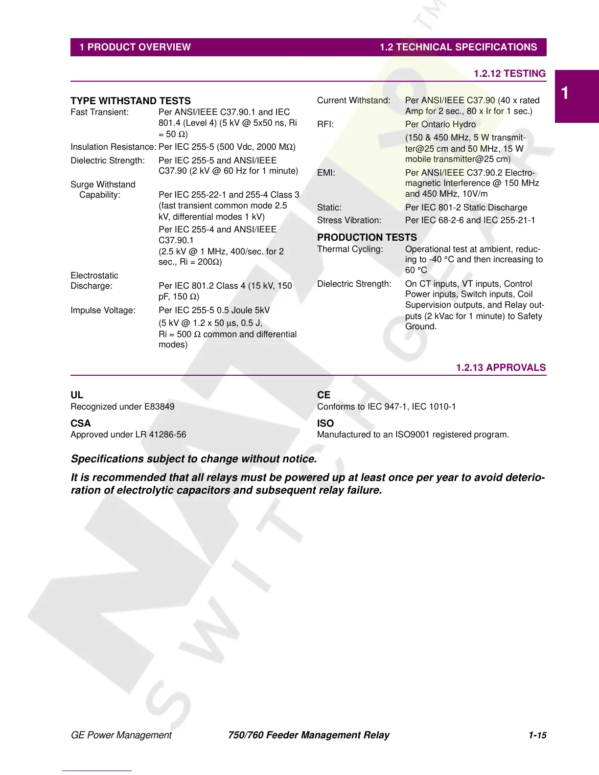 C37.90 (2 kV @ 60 Hz for 1 minute)
