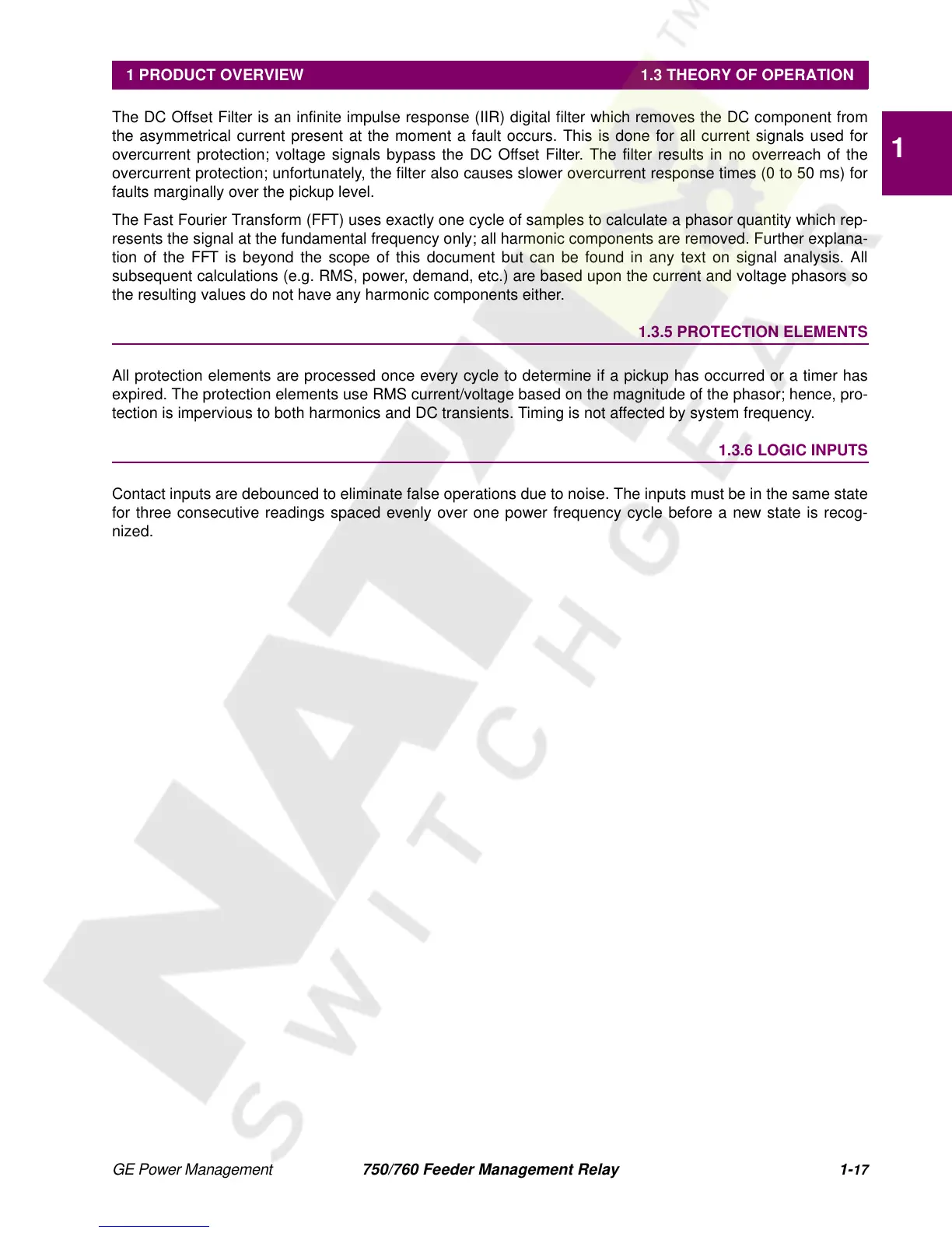 overcurrent protection; voltage signals bypass the DC Offset Filter. The filter results in no overreach of the