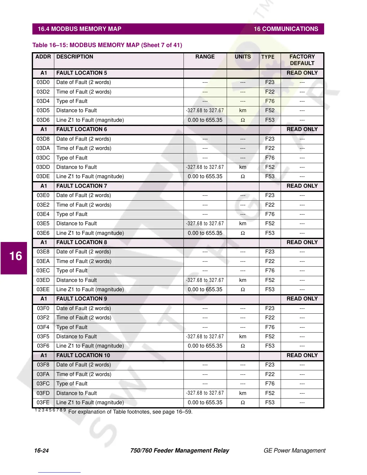 16.4 MODBUS MEMORY MAP 16 COMMUNICATIONS