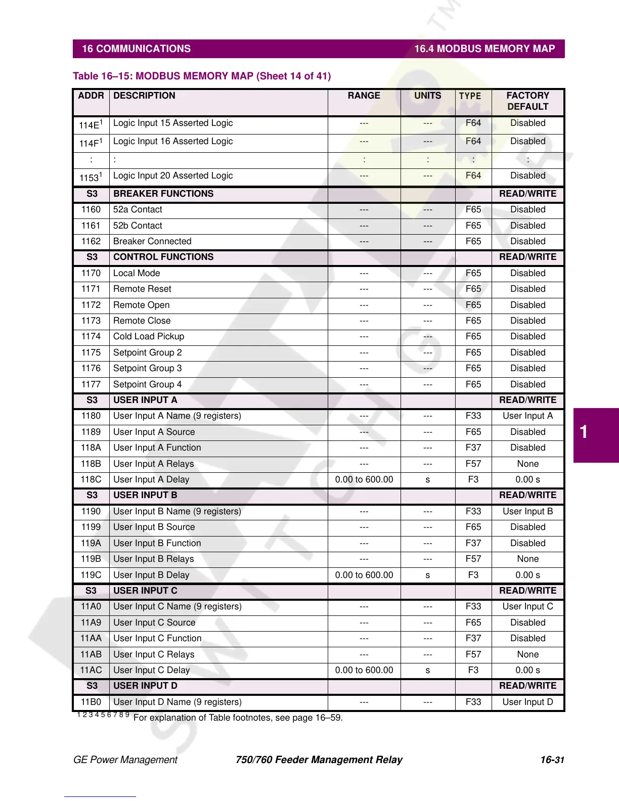 Table 16ā15: MODBUS MEMORY MAP (Sheet 14 of 41)