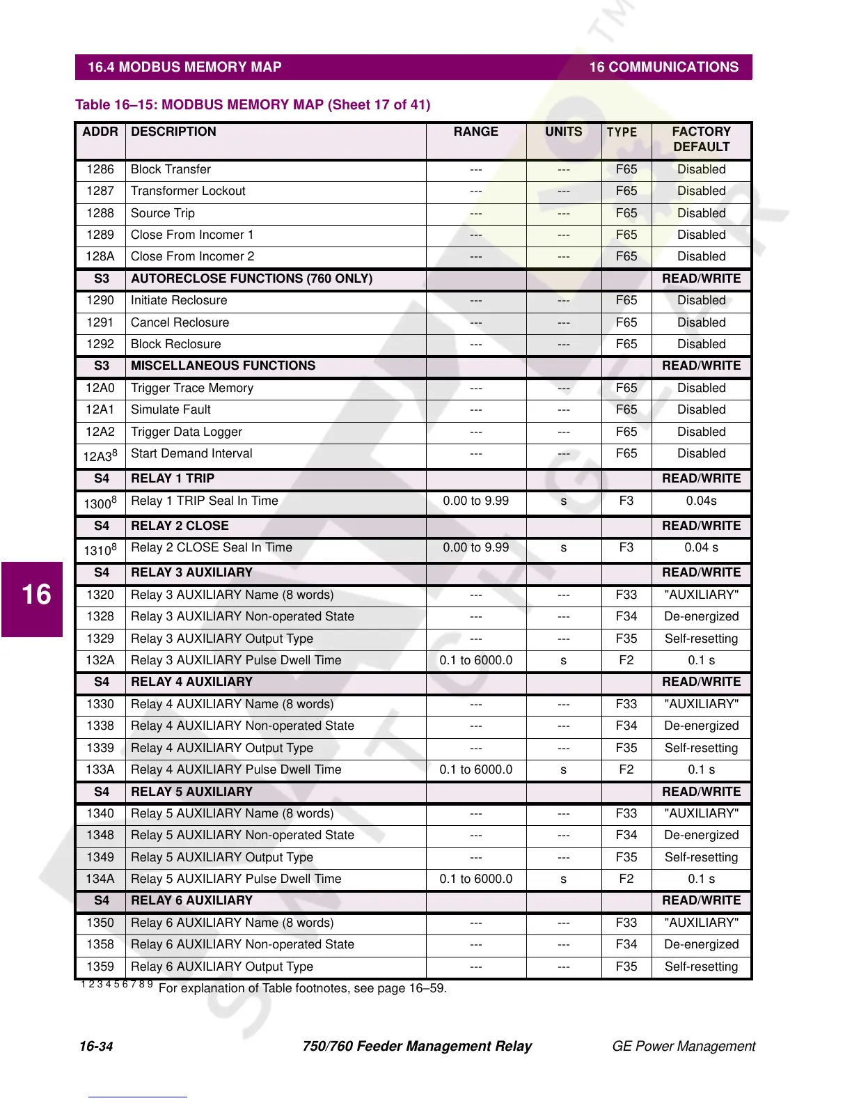 16.4 MODBUS MEMORY MAP 16 COMMUNICATIONS