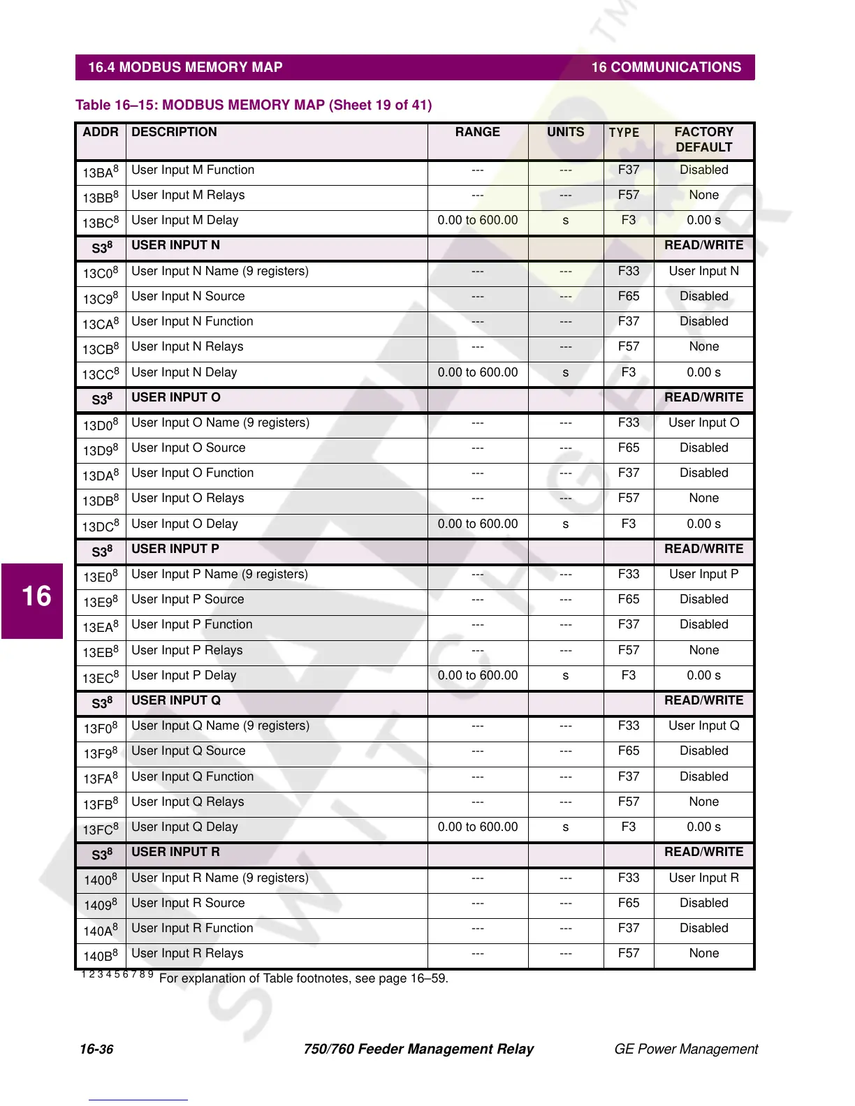16.4 MODBUS MEMORY MAP 16 COMMUNICATIONS