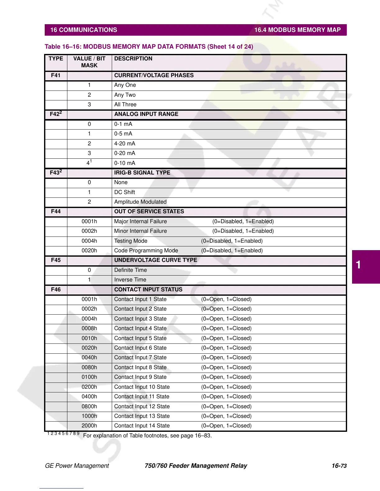 Table 16–16: MODBUS MEMORY MAP DATA FORMATS (Sheet 14 of 24)