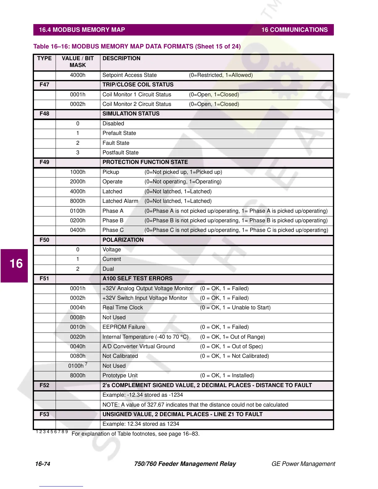 16.4 MODBUS MEMORY MAP 16 COMMUNICATIONS