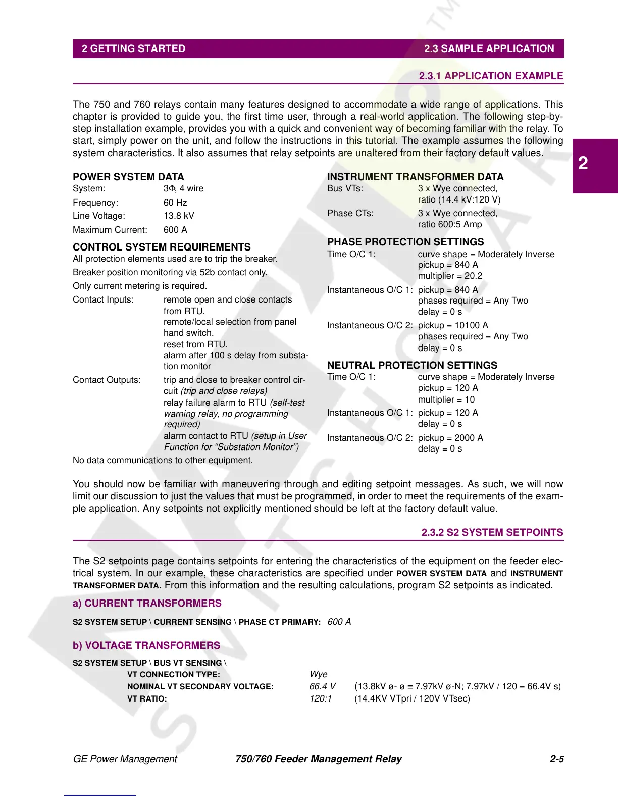 system characteristics. It also assumes that relay setpoints are unaltered from their factory default values.