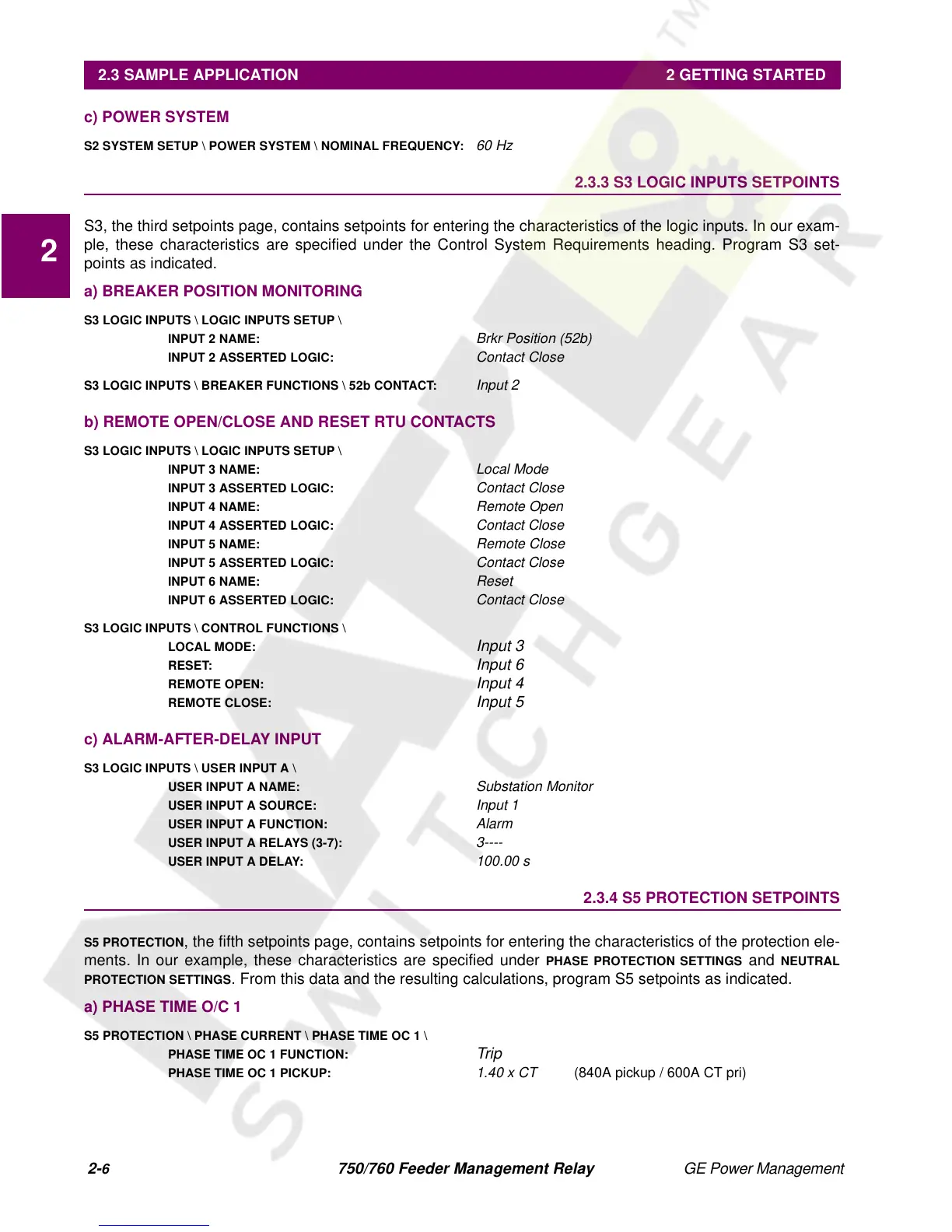 S3, the third setpoints page, contains setpoints for entering the characteristics of the logic inputs. In our exam-