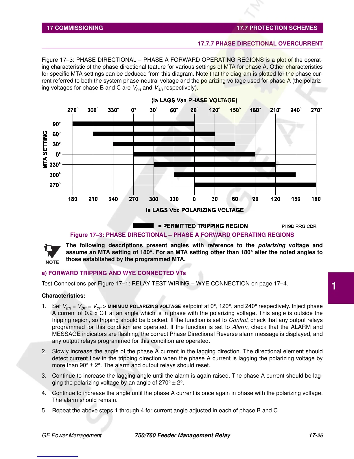 Figure 17–3: PHASE DIRECTIONAL – PHASE A FORWARD OPERATING REGIONS is a plot of the operat-