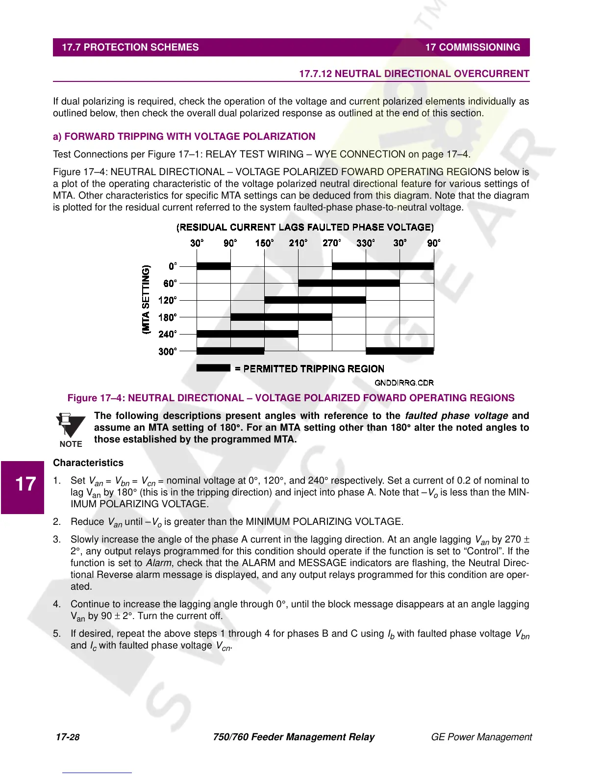 Figure 17–4: NEUTRAL DIRECTIONAL – VOLTAGE POLARIZED FOWARD OPERATING REGIONS below is