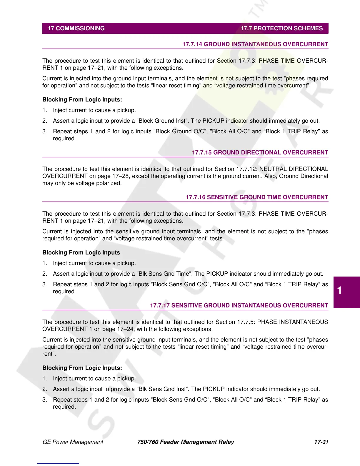 OVERCURRENT on page 17–28, except the operating current is the ground current. Also, Ground Directional