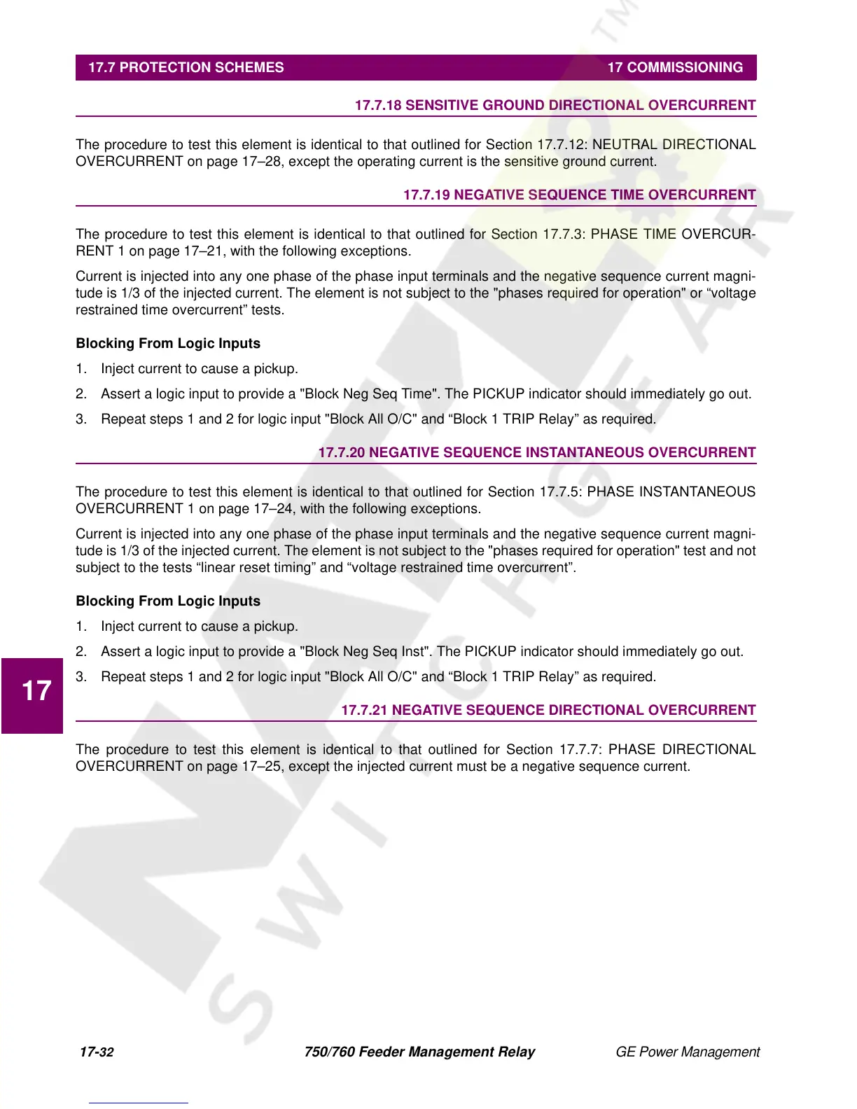 17.7 PROTECTION SCHEMES 17 COMMISSIONING