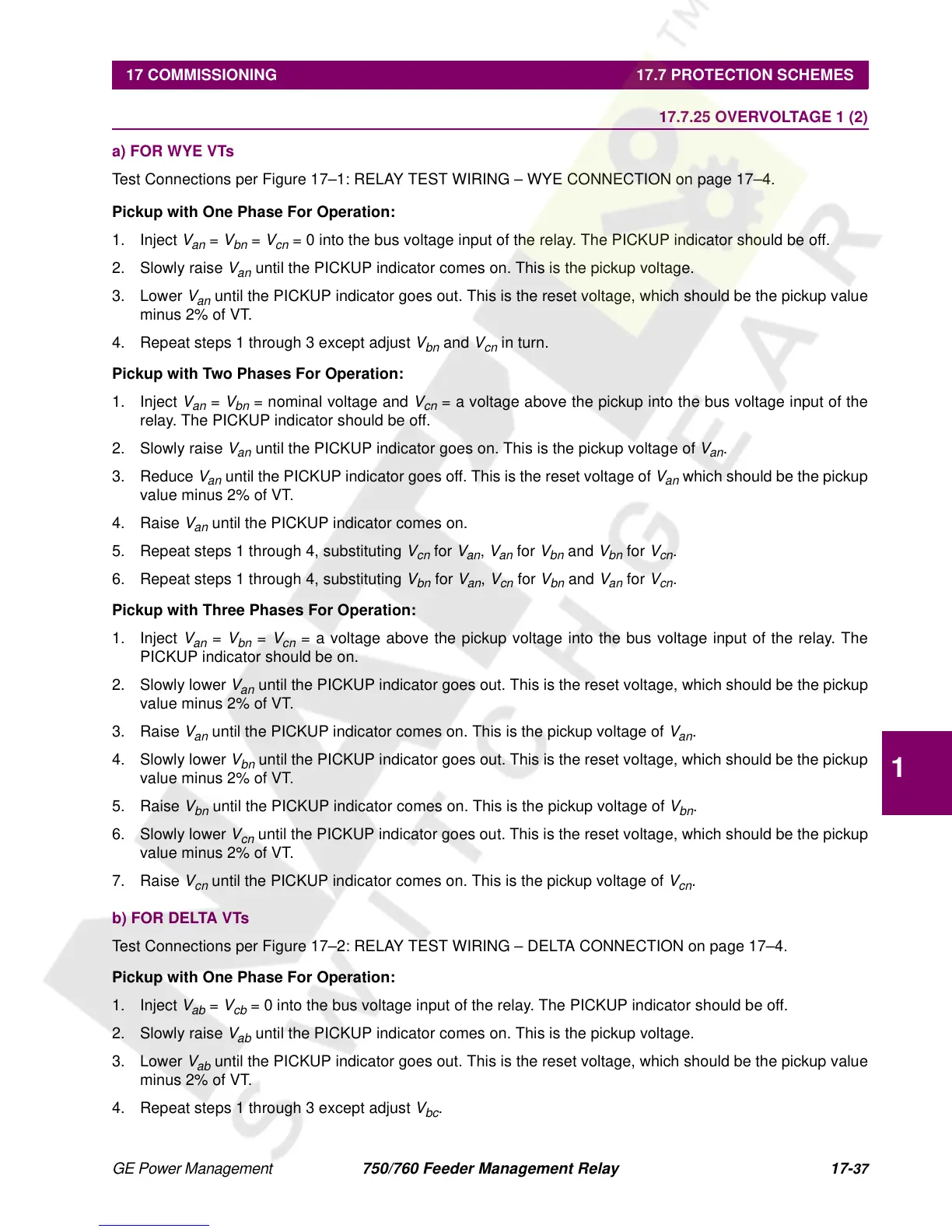 17 COMMISSIONING 17.7 PROTECTION SCHEMES