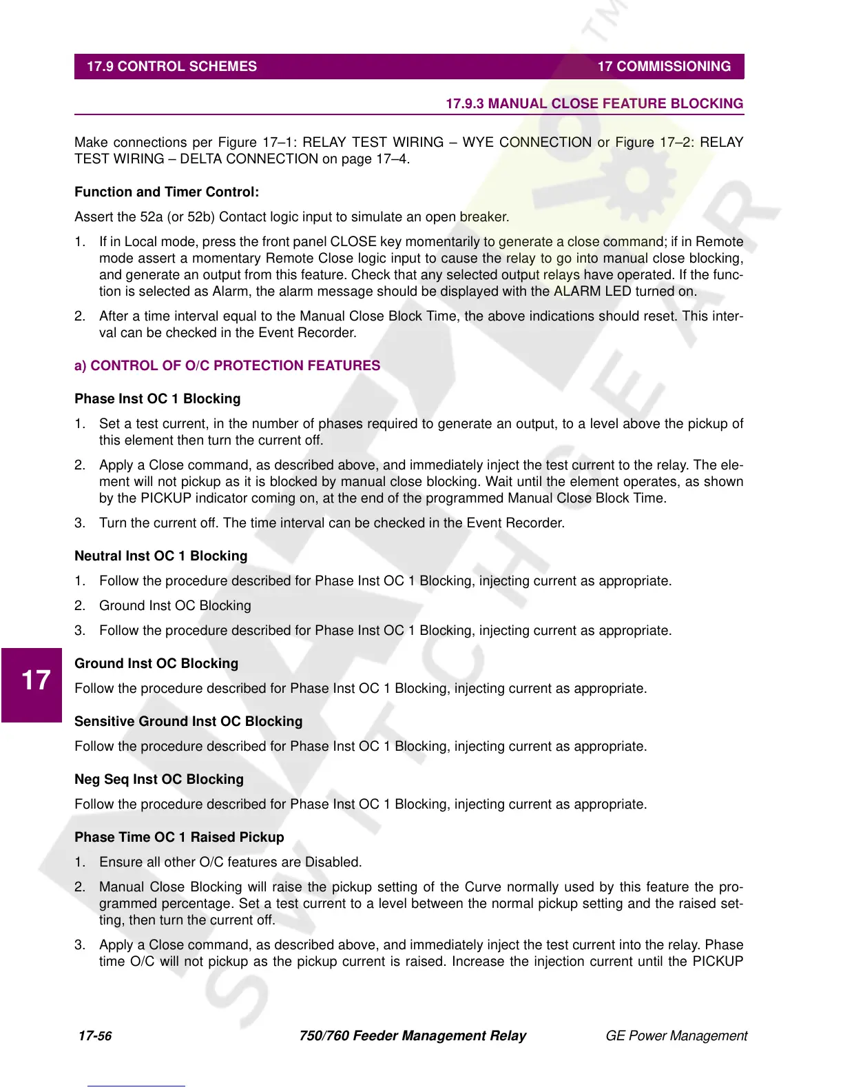17.9.3 MANUAL CLOSE FEATURE BLOCKING