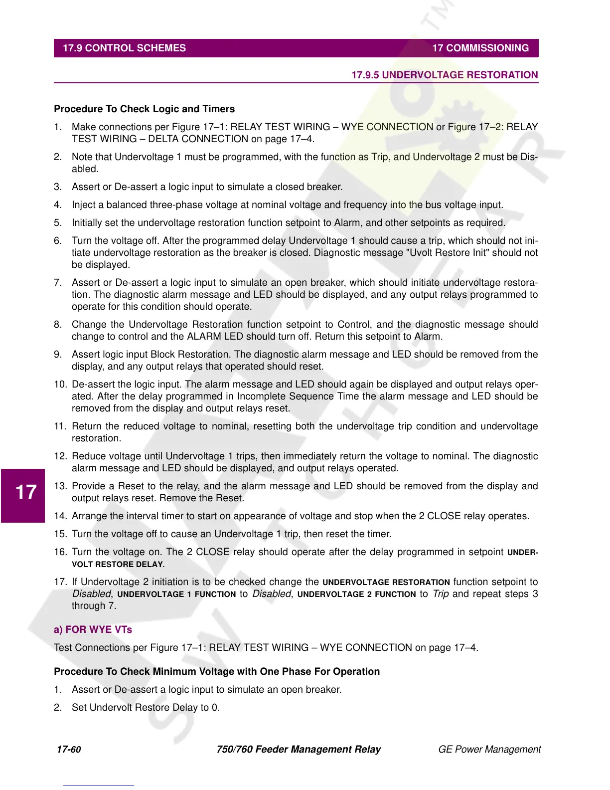 17.9.5 UNDERVOLTAGE RESTORATION