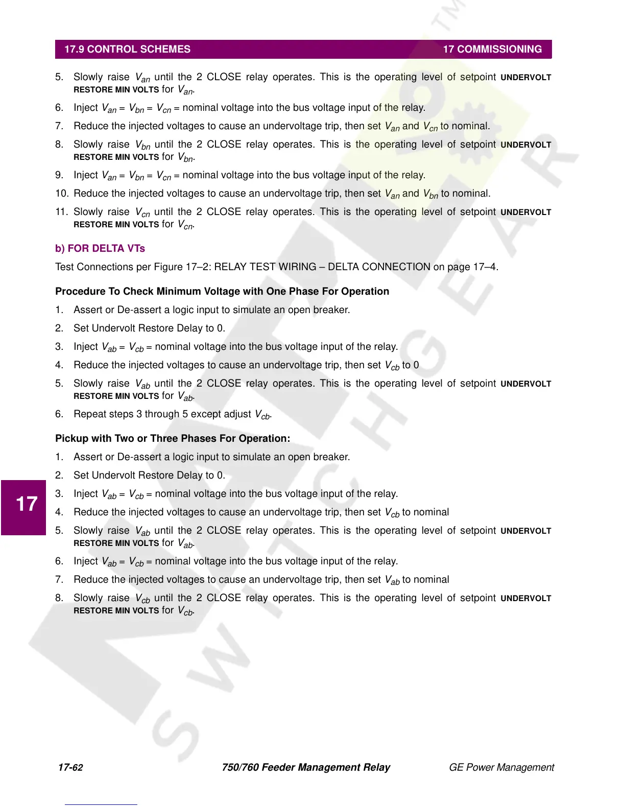 Test Connections per Figure 17–2: RELAY TEST WIRING – DELTA CONNECTION on page 17–4.