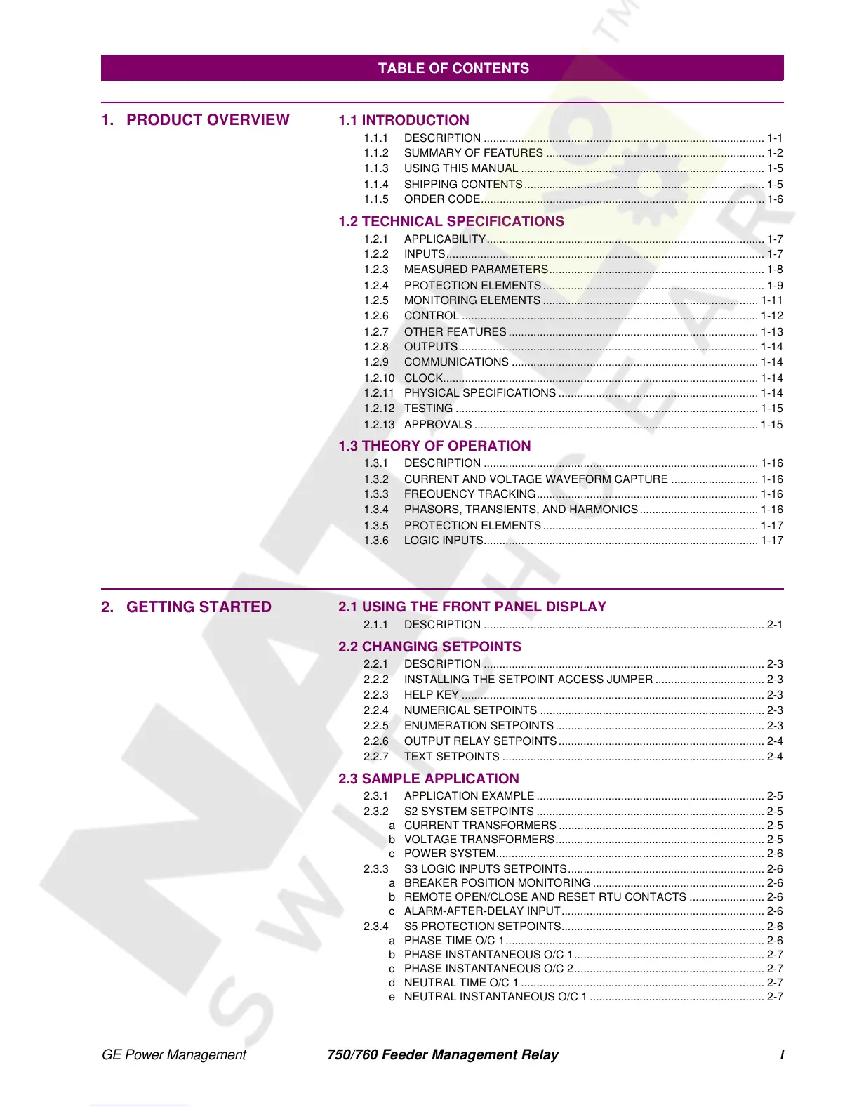 1.3.5 PROTECTION ELEMENTS..................................................................... 1-17