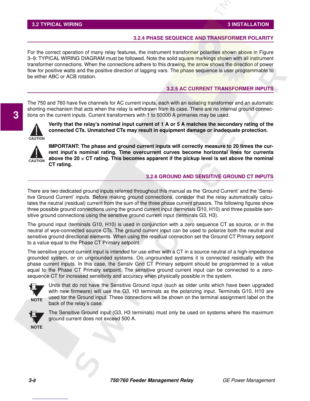 3.2.6 GROUND AND SENSITIVE GROUND CT INPUTS