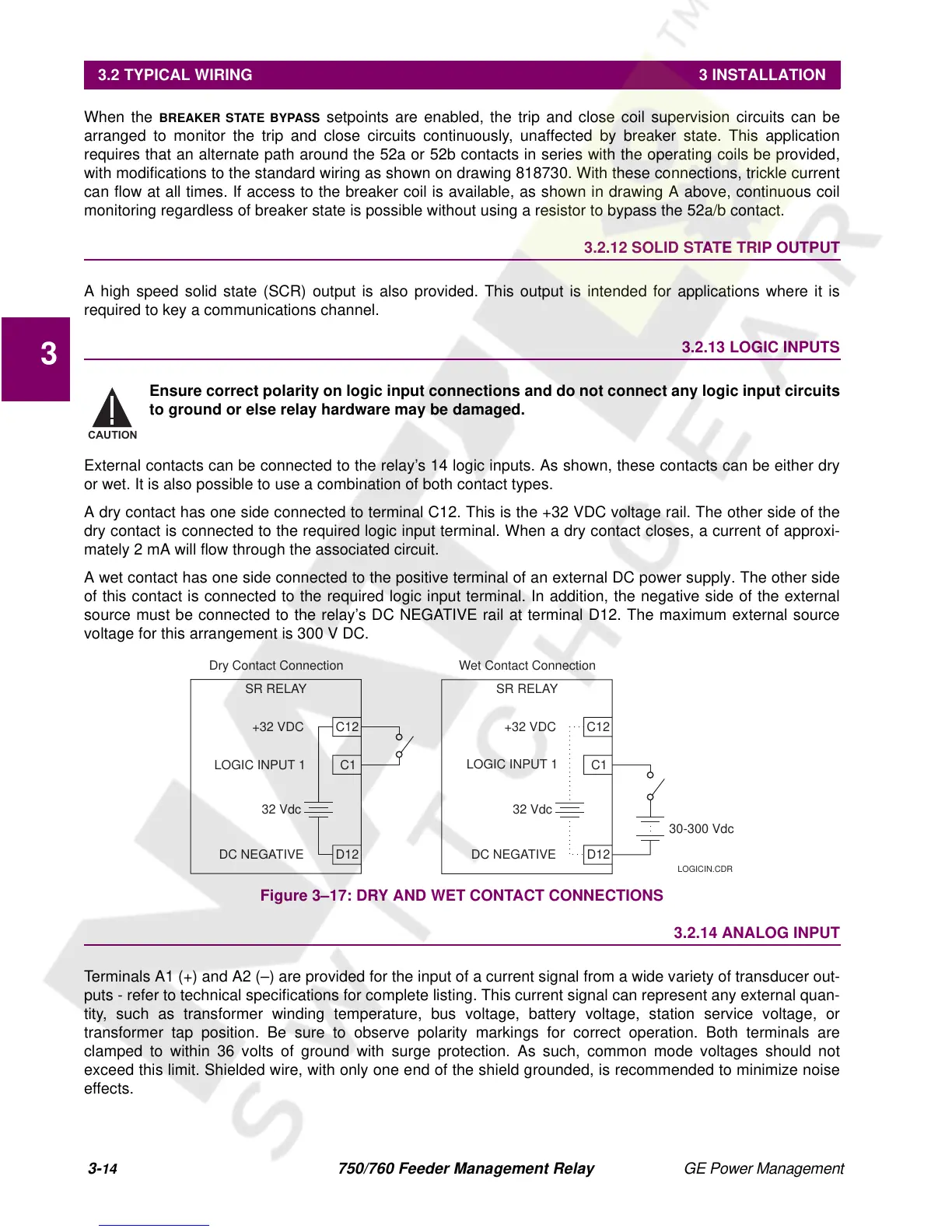 Figure 3–17: DRY AND WET CONTACT CONNECTIONS