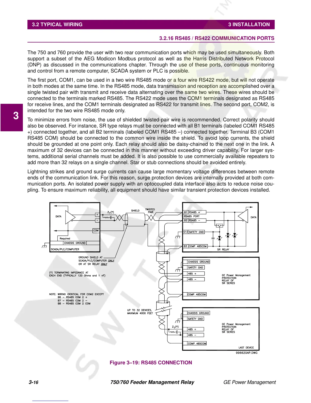 3.2.16 RS485 / RS422 COMMUNICATION PORTS