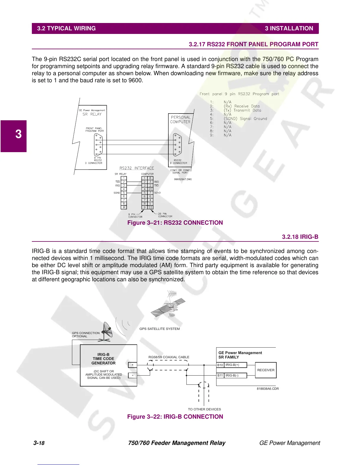 the IRIG-B signal; this equipment may use a GPS satellite system to obtain the time reference so that devices