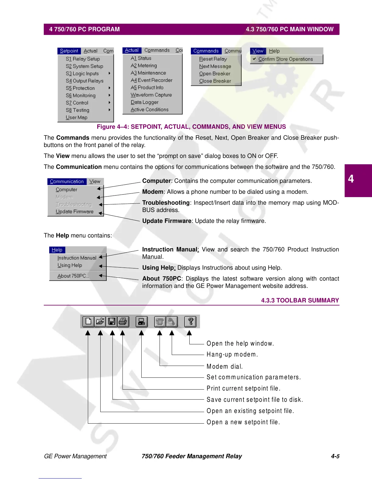 Figure 4ā4: SETPOINT, ACTUAL, COMMANDS, AND VIEW MENUS